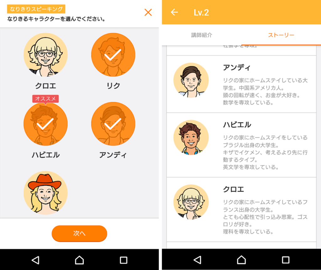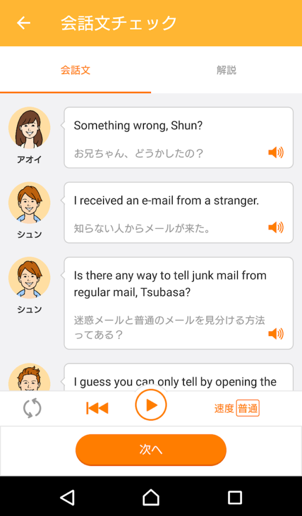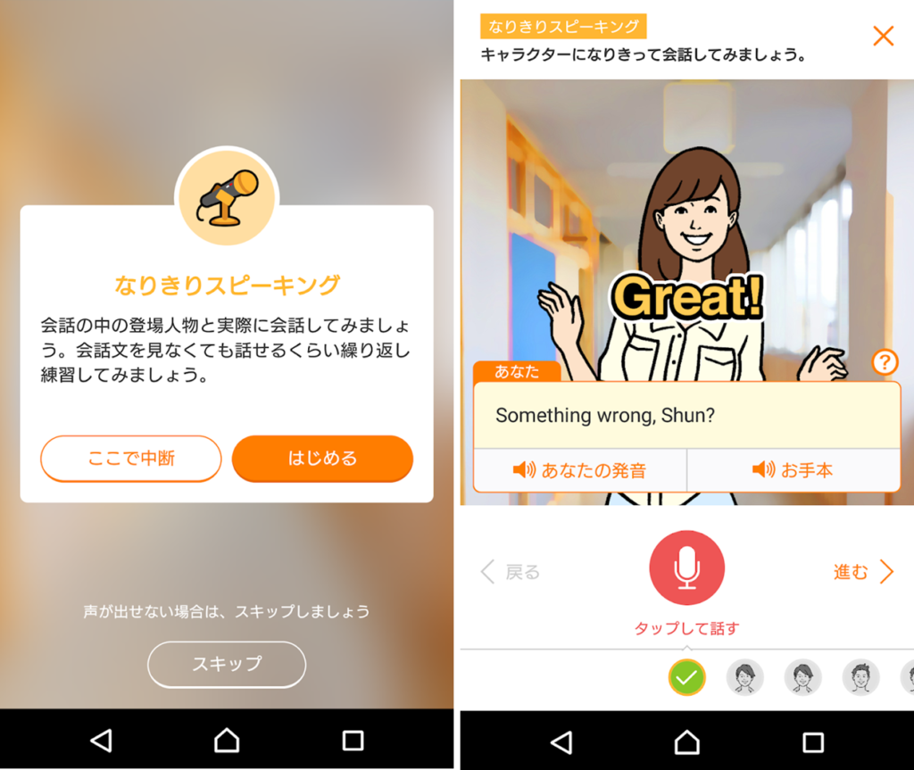 「なりきりスピーキング」は今回ピックアップされている登場人物になりきって、発音の練習が出来ます。