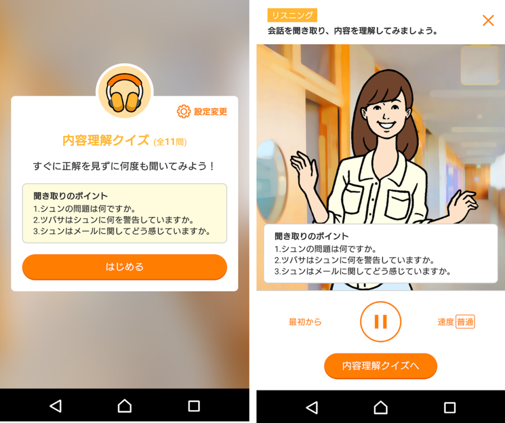 日常英会話コースのデイリーレッスンは、【内容理解クイズ】という簡単なミニテストからスタート。
