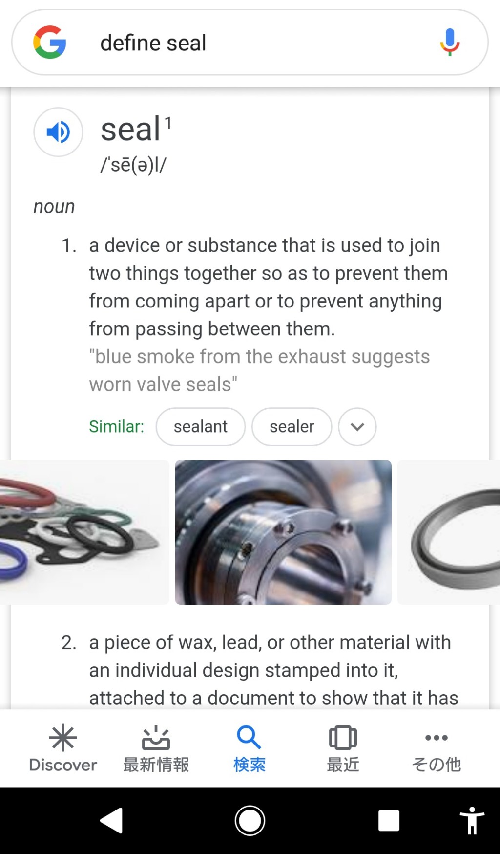 また「define seal」のように「define 英単語」で検索すると、その英単語の定義の説明や