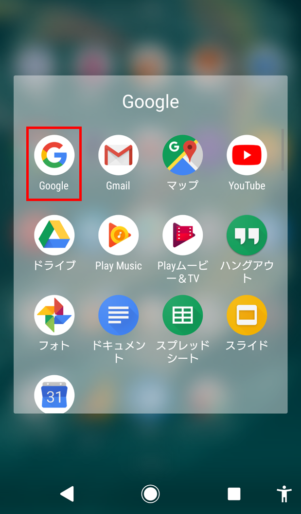 (アプリの)Google検索を起動