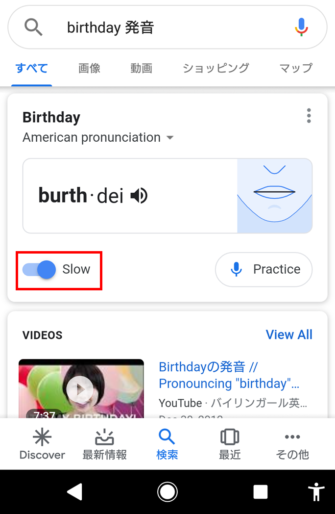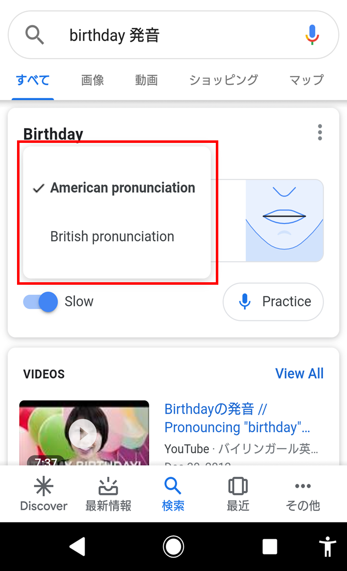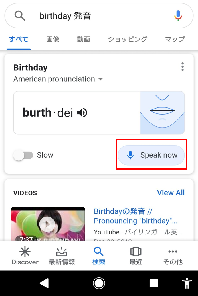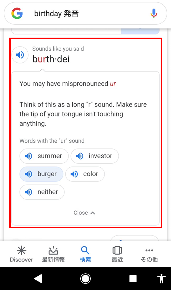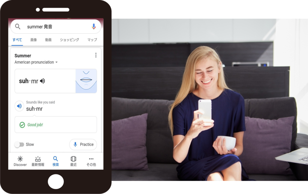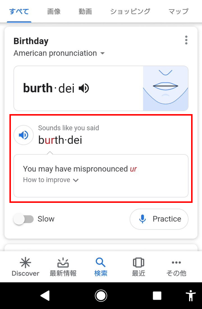 すぐに調べて練習が出来るのは、Google発音矯正アプリのメリットですね。