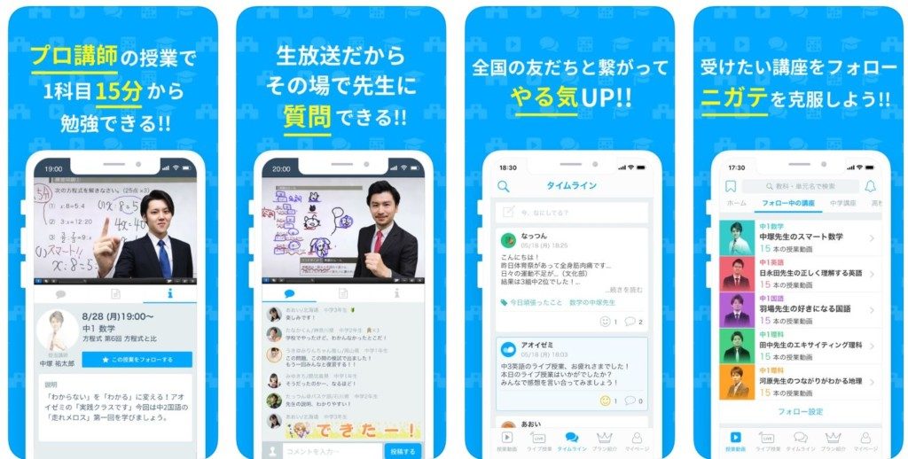 ライブ授業が、見放題なのが『アオイゼミ(中学・高校講座)』です。