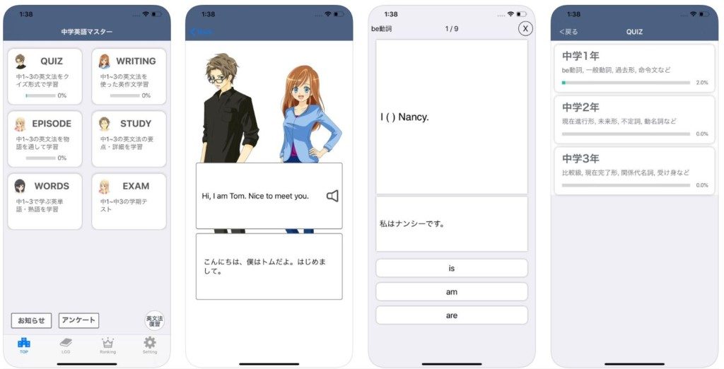 英文法だけでなく、語彙力・リスニングなども一緒にトレーニング出来ます。