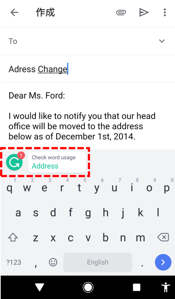 (パソコンと同じように)グラマリーが起動し、リアルタイムで添削してくれます。