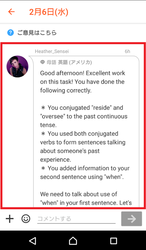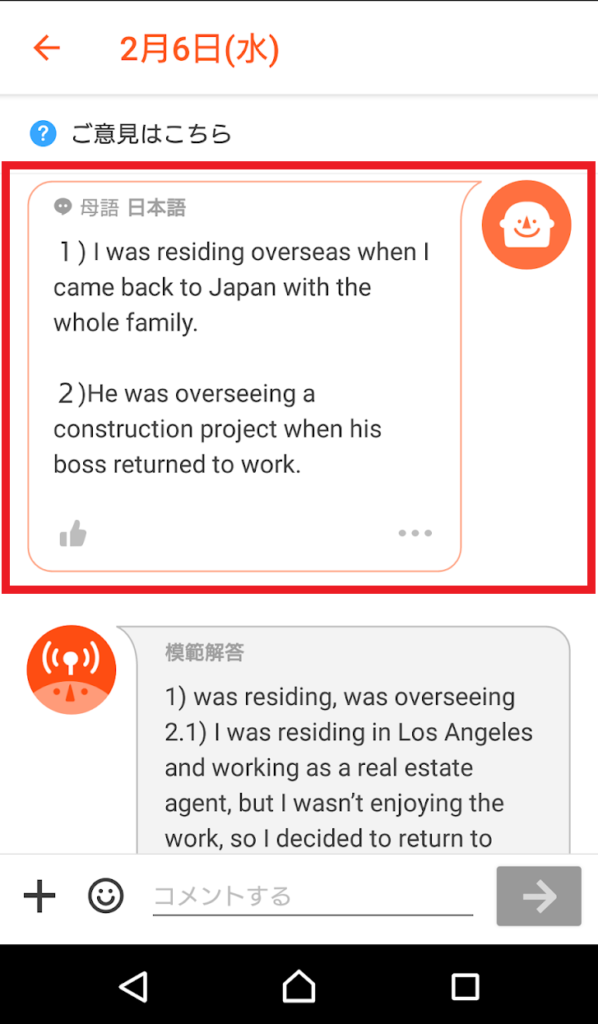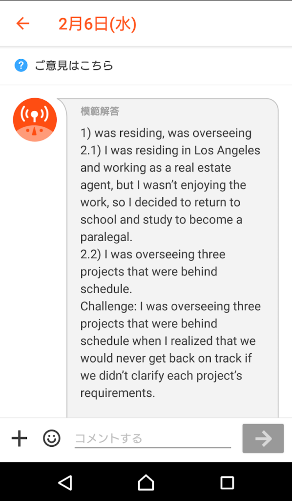 ネイティブ講師から【より良い・より自然な】言い回しなど、かなり細かくフィードバックがもらえます。