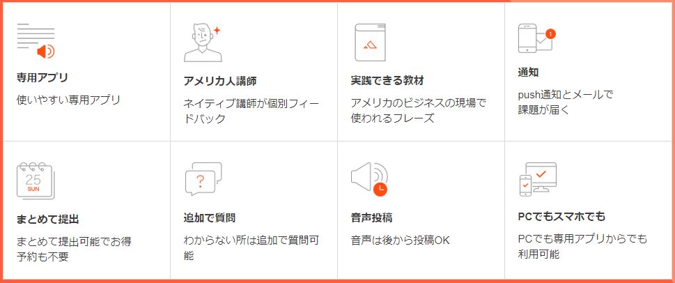 (Speaking・Writingなど)アウトプットに比重が置かれた、学習サービスと言えます。
