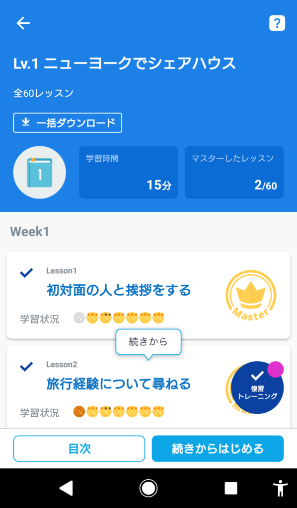 もし仕事が忙しく時間がない時は1レッスンだけでもOKなので、続けるよう意識してみてください。