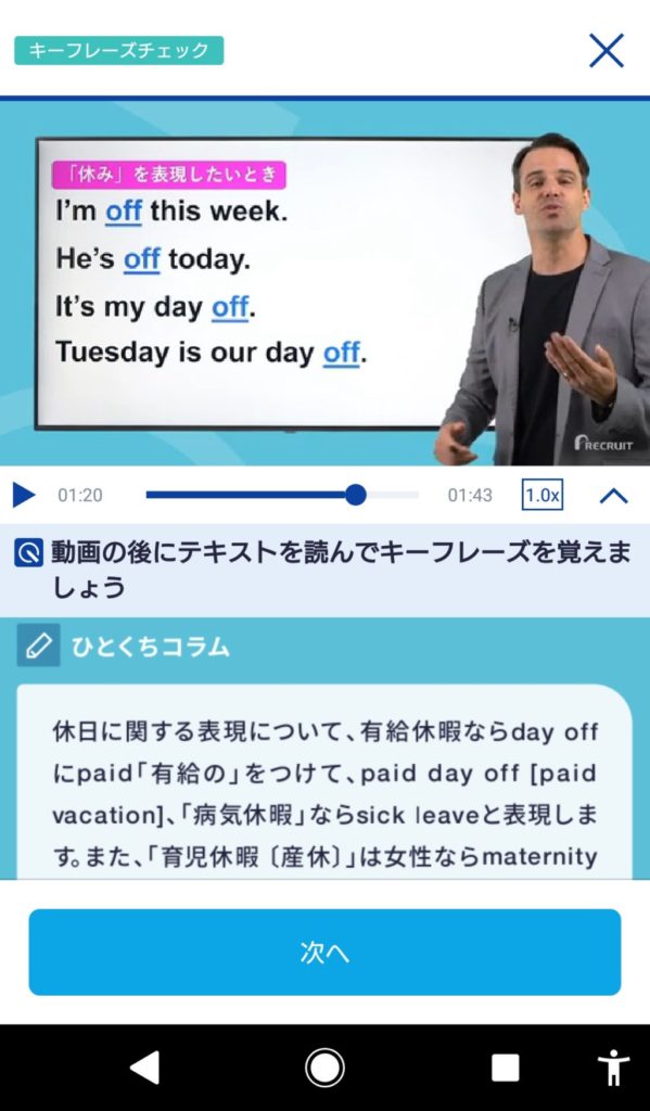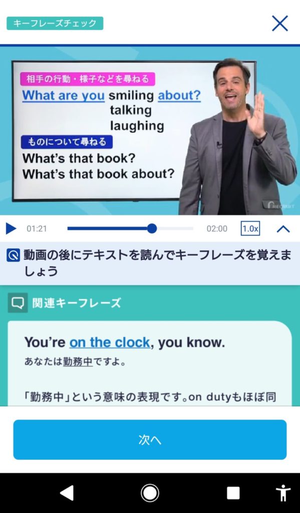 また"新"日常英会話コースは一レッスンに一つ、重要フレーズの解説動画が用意されています。