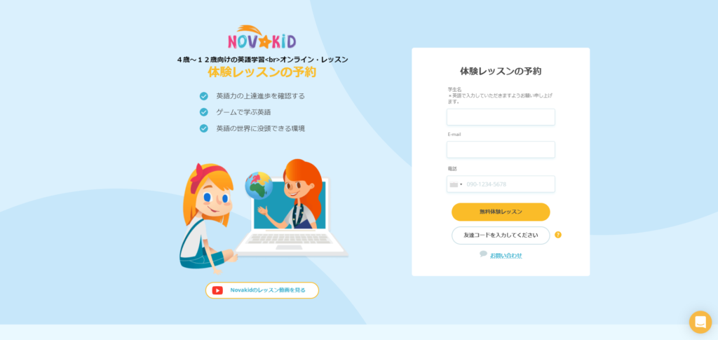 ノバキッドの体験レッスンを受ける方法は、とても簡単です。