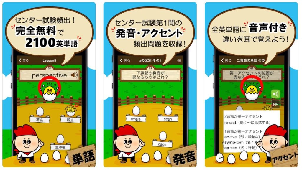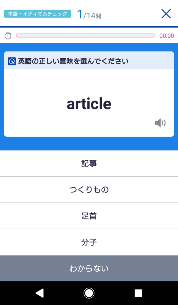このアプリはセンター試験レベルの英単語が、問題として出題されるのですが