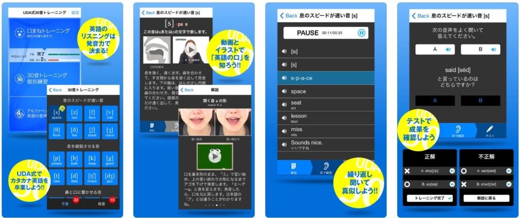 続いて『UDA式30音トレーニング』は、母音・子音の発声方法のみ