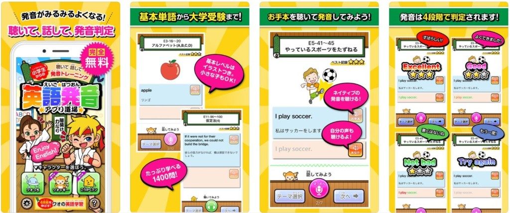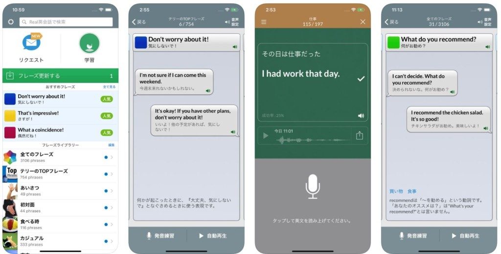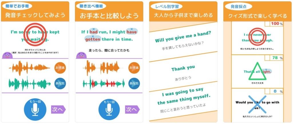 ここまで単語・フレーズの発音を、練習できるアプリを紹介しました。