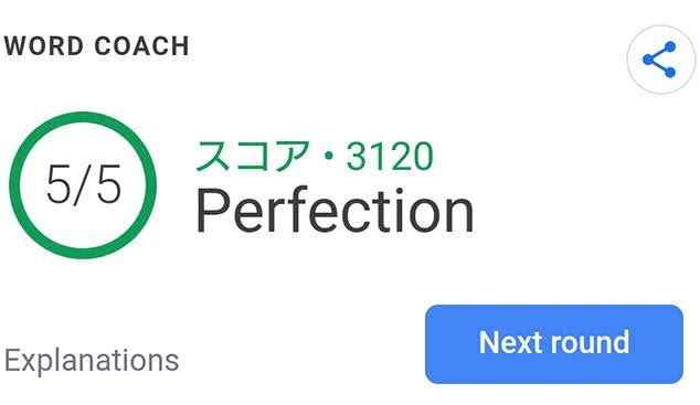 【Google Word Coach】は5問1ラウンドで、1問毎に正解・不正解を教えてくれます。